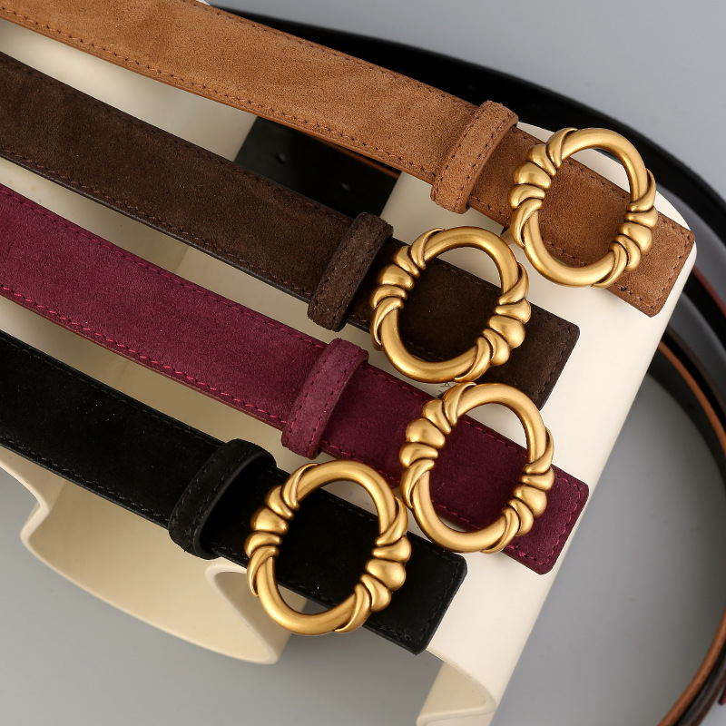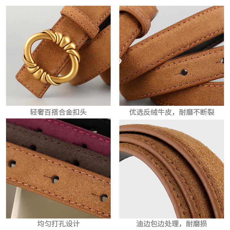 Women's genuine leather belt, cowhide nubuck, versatile and stylish with jeans embellished belt